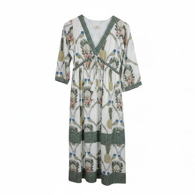 The Allegra Dress in Royal Tropic combines timeless elegance with practical design. This sophisticated piece features a flattering v-neckline, func...