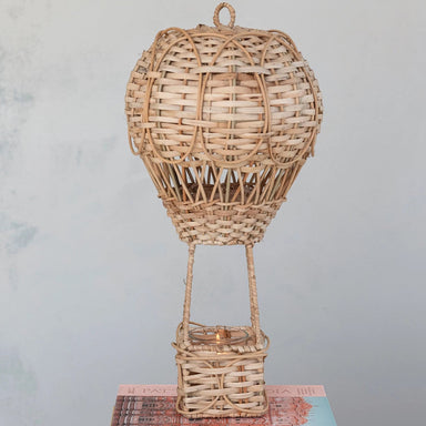 8-1/2" Round x 17-3/4"H Hand-Woven Rattan Hot Air Balloon votive Holder/Vase w/ Glass Insert, Natural