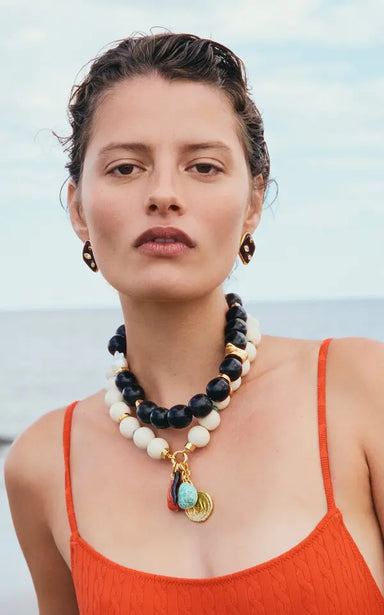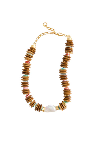 LF named this collar necklace for the seaside resort destination in Corfu, Greece. To match its vibrant yet relaxed spirit, we've taken brown recyc...