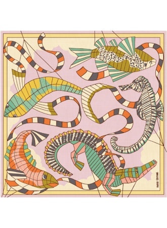 Green square scarf from the Pagode collection, made of cotton to tie around the neck or in the hair. 70 x 70 cm 63% Silk 37% Silk