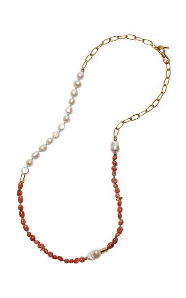 Toggle fastening Composition: gold-plated brass, freshwater pearls, agate beads, turquoise Designer color: Soleil Made in the USA Length: 35"