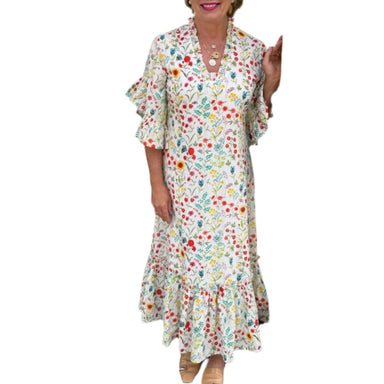 Embrace sunny days in the Fitzroy & Willa Soleil Maxi Dress, featuring a playful v-neck and flutter sleeves that dance with every breeze. Craft...