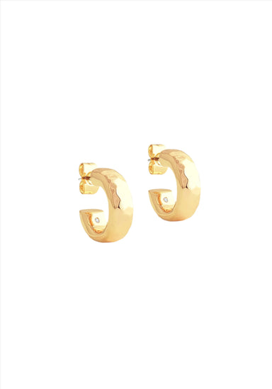 The Milos hoops perfectly complement the collection's signature aesthetic with their soft hammered gold finish that captures light like sunbeams da...