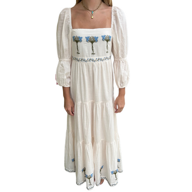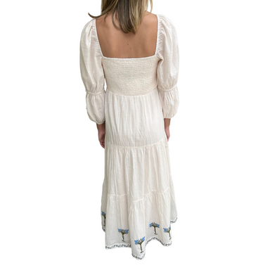 Step into timeless sophistication with the Anna Cate Jill midi dress in Vintage Navy, showcasing an enchanting botanical print of pressed flowers...