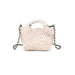 This bag is made of soft vegan leather. It features a crossbody strap and a small attached zip bag.