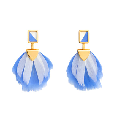 Bold and textural, the Elise Bezel Statement Earring is a fusion of natural elements and modern edge. Dyed goose and rooster feathers offer layered...
