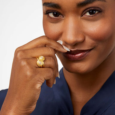 Shimmering gemstones of rose cut glass embellished with brilliant cut CZ. 24K gold plate, imported glass, mother of pearl, cubic zirconia 0...
