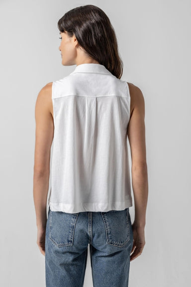 The classic button-down meets the ease of a tee! The Sleeveless Button Down in our Soft Wash Jersey fabric is a versatile staple, perfect for pairi...
