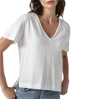 The Shirred Back V-Neck Tank in our cotton and modal blend fabric is a fresh update to the classic tank. Featuring a deep V-neck and a swingy A-lin...
