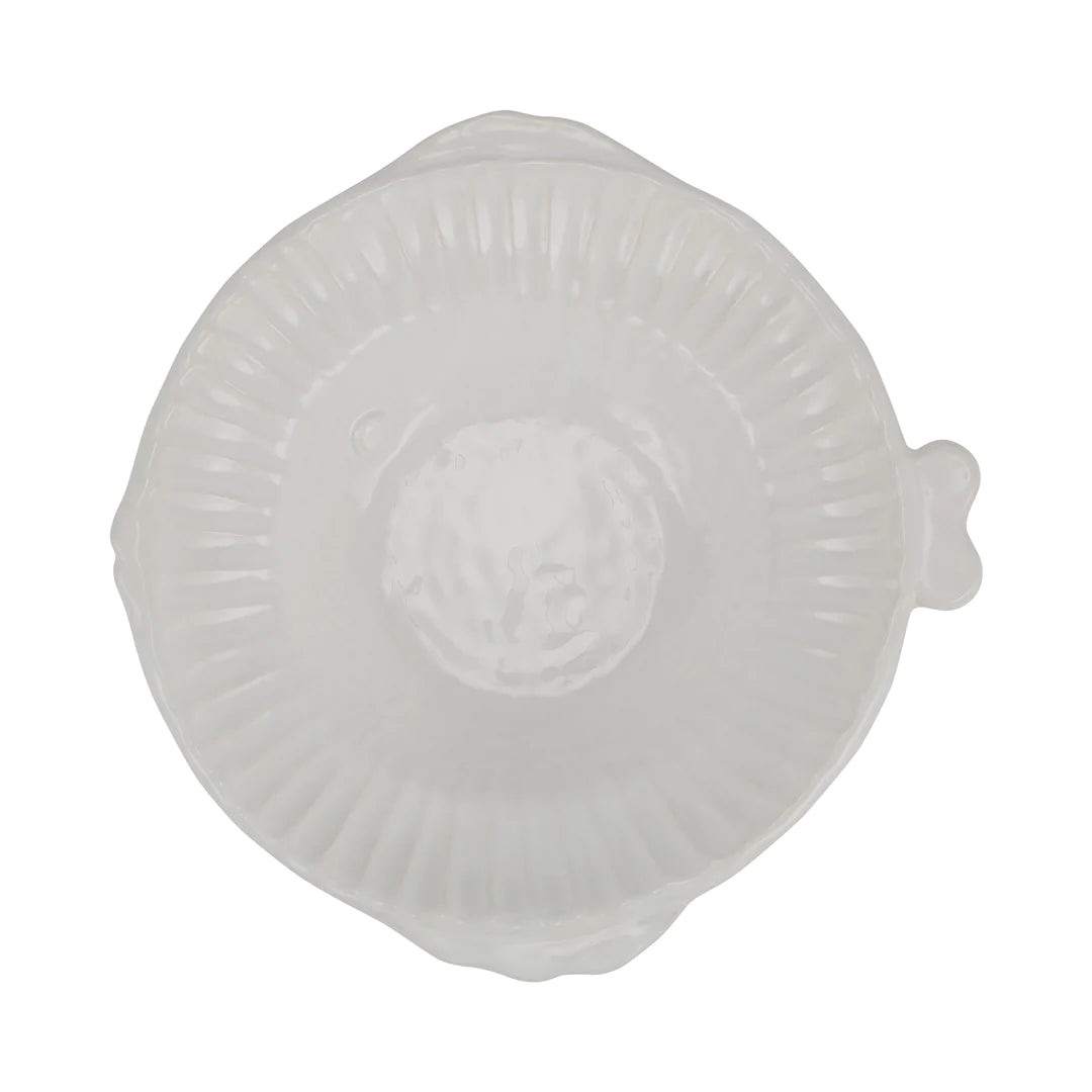 Playing off the hand pressed edges of Pietra Serena, the Pesca Serena Medium Serving Bowl has charming fish details to create a playful yet sophisticated coastal table.