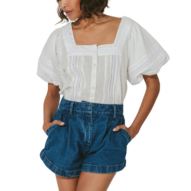 Made of 100% organic cotton yarn Ethically handmade in India Relaxed fit Bra friendly Cropped V-neck Cleobella logo plate at back neck Hand cold ...