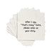 Our 3-ply, 5x5 folded, white napkins are printed with crisp black ink. They come cellophane wrapped in packs of 20, and we think they're some of the funniest on the market! (If we do say ourselves!)