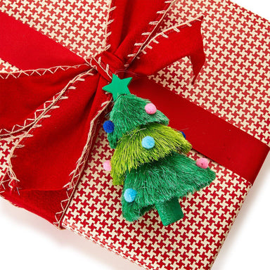 Decked Out Hand-Crafted Sisal Tree with Pom Poms Ornament - (five colors)