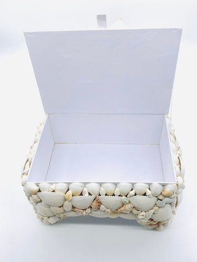 $72.00| /White shell box with shell cluster top. White lining. 5" wide, 8" tall, 9" long