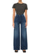 Hepburn is a vintage high-rise that is fitted through the waist and seat, tapering outward from the thigh for a wide leg with a 32' inseam. Stream is a rich dark indigo with fading and whiskering. It features antique silver hardware, tonal stitching, clean hem and a black back patch.