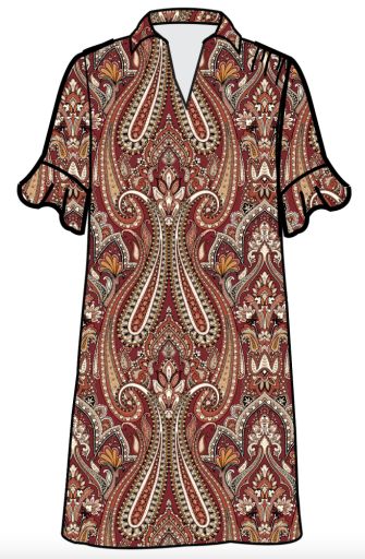 The Kris Dress features a collared neckline, short length puff sleeve with elastic cuff and a button front closure.