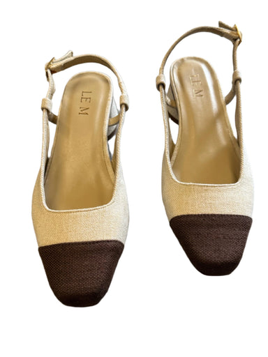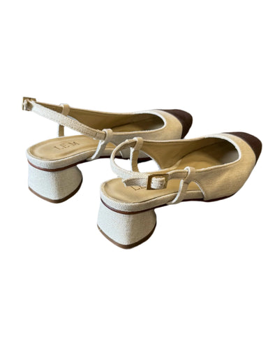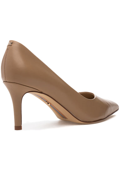 Beige leather upper Leather lining Cushioned footbed Rubber sole Pointed toe Approx. 3" heel
