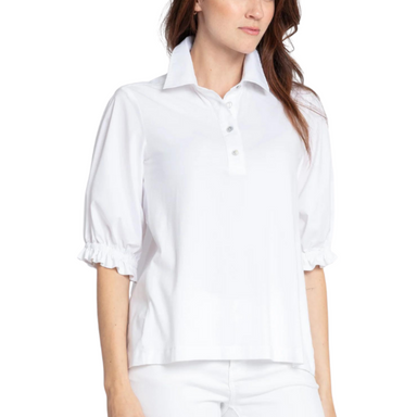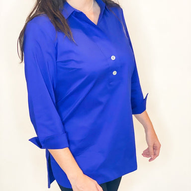 Nicole is a style that you can dress up or style it casually. Split neck with collar, pull over style, bracelet sleeve length accented with bias cu...