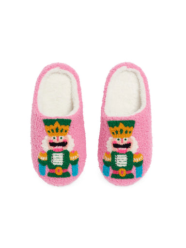 March to the beat of holiday cheer in these charming Nutcracker Slippers. Featuring a playful embroidered nutcracker face in bright, festive colors...