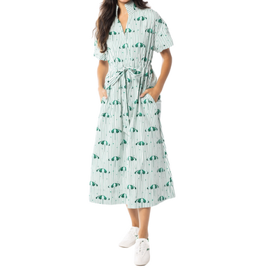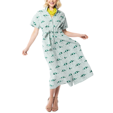The Bria dress was designed with feminine ease in mind. Classic style elements like a stand collar, wide self belt, covered placket and elongated ...
