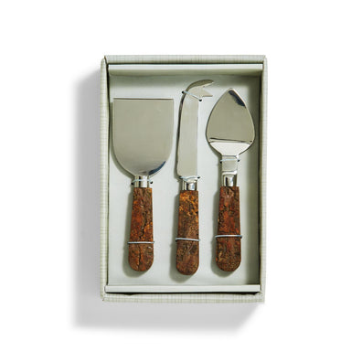 This set of 3 rustic cheese knives feature Mango wood bark handles and stainless steel blades.Set of 3Made from Wood Bark Stainless steel blades Pe...
