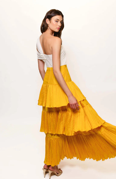 asymmetrical shoulder tiered maxi dress fabric: stretch crepe + shantung center back zipper dry clean only