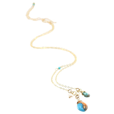 Spiney Oyster, Turquoise and Pearl accent cascade on fine chain. Available in 14K Gold Filled 16-18" adjustable length.