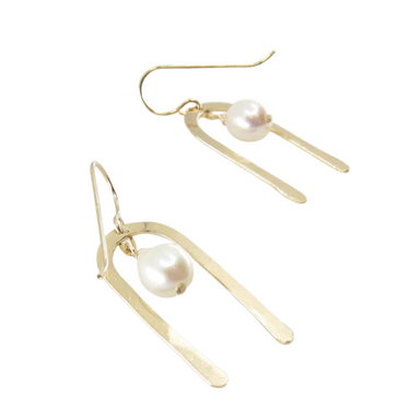 Small hand forged earwires with freshwater pearl drop handmade by J. Mills Studio in North Carolina