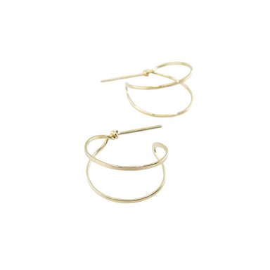 We are crazy about these hand forged tiny post hoop earrings that are very much like a huggie. Double Hoop 1/2" 14k GF Lovingly made in South Car...