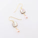 Shimmery Abalone squares with Pink Rice Pearl drops, on hand-wrapped chain links and french style earwires.