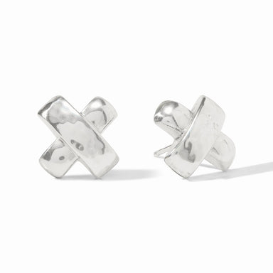 A petite X defined by a lightly hammered finish overlapping a smooth finish. 0.5 inch length24K gold plateJulie Vos hallmark