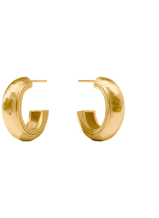 24K gold plate Diameter: 0.9 inches (small), 1.25 inches (medium), 1.65 inches (large) Post for pierced ears Julie Vos hallmark