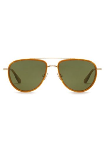 This handcrafted frame is a combination of glossy acetate and glossy 18K gold-plated titanium hardware Its adjustable nose pads and temple wire al...
