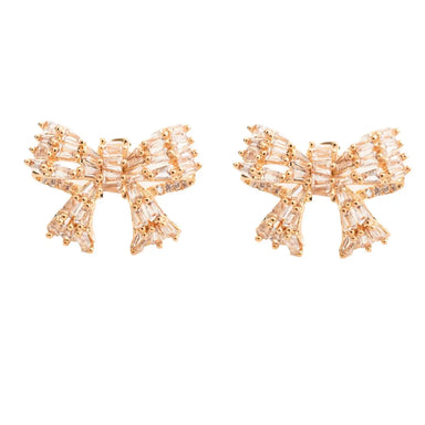 Gold Mini Sparkler Statement Stud Holiday Bow Earrings 0.5 x 0.8 in