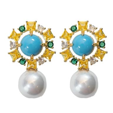 Inspired by the glamorous style of Palm Beach, these vintage-inspired statement earrings feature vibrant yellow and green gemstones surrounding a b...