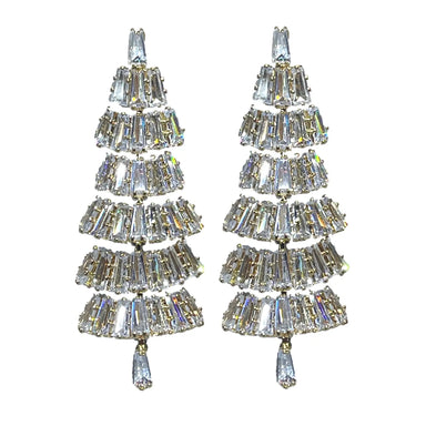 These Christmas tree holiday statement earrings feature a bold, sparkling design made from stacked baguette crystals in a sleek tiered silhouette. ...