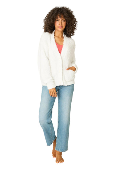 Women’s ivory bouclé cardigan with long sleeves, front pockets, and button closure. 100% Polyester - Bundle Up BoucleMachine Wash Cold. Do Not Blea...