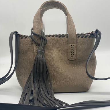 Genuine Leather Handbag Zip Closure Semi-rigid construction Mobile phone holder Inside zip pocket for documents Double compartment Lining in poly...