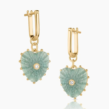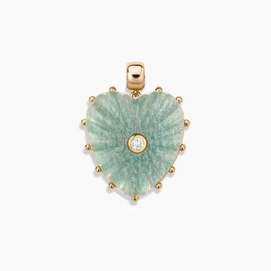 14k gold plated 3.4mm Finn medium elongated chain with removable carved amazonite and cubic zirconia heart pendant on a large round bail. Fully adj...