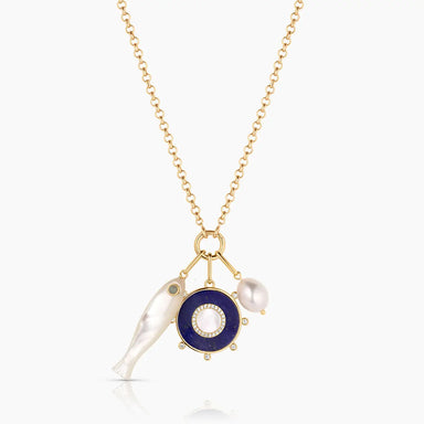 Our new favorite gemstone fish charm clipped on an everyday pearl lariat makes for a fun and chic everyday look. This lucky hand-carved tiger's eye...