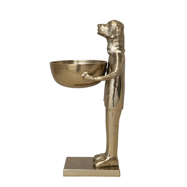 8"L x 6-1/4"W x 16"H Cast Aluminum Labrador Holding Bowl, Gold Finish