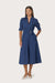 Featuring a collared neckline, button-through front, and elbow-length cuffed sleeves, this shirt dress includes a D-ring belt to cinch the waist and side pockets for everyday ease. Finished with embroidered detailing at the back and fully lined for comfort, it blends classic tailoring with artisanal character.