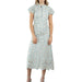 The high neckline and flutter sleeves create a refined silhouette, while the gently flared skirt moves beautifully with each step. Finished at a flattering midi length, this dress strikes the perfect balance between polished and easygoing.