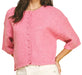 Elevate your transitional wardrobe with the Caite Short Sleeve Cardigan, the perfect blend of cozy knitwear and chic, modern styling. Designed with a relaxed comfort fit and a timeless round neck, this versatile button-down is your new go-to for effortless layering. Whether you choose the vibrant Green, the romantic Pink, or the classic Cream, its plush fabric blend offers a cloud-like feel with just the right amount of stretch for all-day wear.