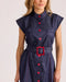 Elevate your wardrobe with the S’EDGE Suzie Dress in Ink Blue. Featuring fun red button accents and a detachable belt with a matching red buckle, this cap-sleeve dress combines refined details with versatile styling. Crafted for effortless elegance, it’s easy to care for with machine wash cold and hang to dry instructions, ensuring it remains a staple in your collection season after season.