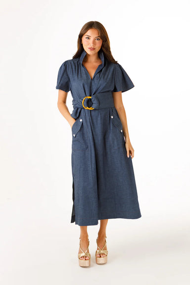 The Maddie Dress combines timeless elegance with everyday practicality. Crafted from 100% cotton, this sophisticated piece features subtle tan and...