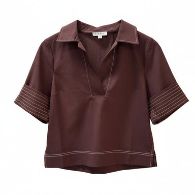 The Britt Top in Truffle Stripe is a tailored standout, designed with elastic puff sleeves, a classic fold collar, and a button front with a sleek ...