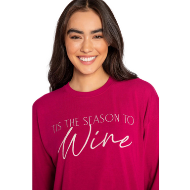 Women’s light mint 2-piece boxer set in baby peachy waffle with ornament print, long-sleeve top, and boxer shorts. 64% Polyester, 33% Rayon, 3% Ela...