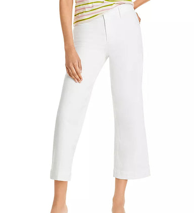 Approx. 11.5" rise; 27" inseam High rise Five-pocket style Wide legs Ankle length Button/zip fly; belt loops Rayon/cellulose acetate/cotton/pol...