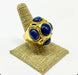 The Marge is a sophisticated cocktail ring featuring a statement design and dazzling 5mm Lapis stones. It is crafted with a high-quality 14K gold plated brass for a luxurious touch.